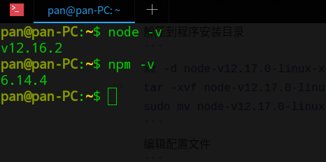 如果出现相应的版本号,则代表安装成功。不过要注意的是,用apt安装不一定成功,因为你的操作系统厂商的软件库里不一定包含。此时我们可以使用npm安装,因为在上面步骤我们安装nodejs已经包含了npm,如下代码: