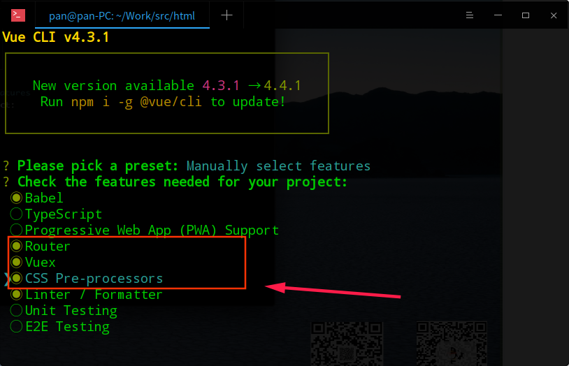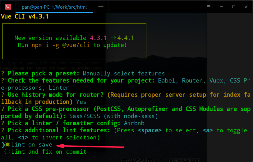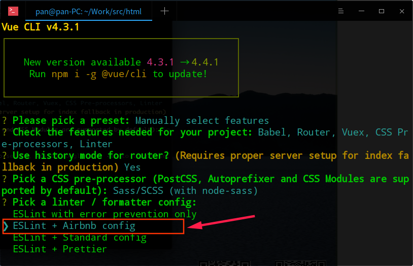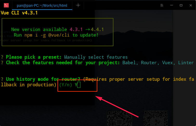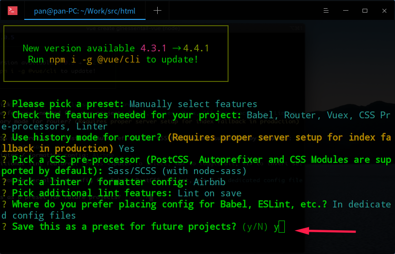 如果选择是,按回车后还需输入预设名,再按回车等待安装即可。如果出现如下如所示则代表创建爱你成功,否则你需要检查一下网络和你的环境,重新创建。