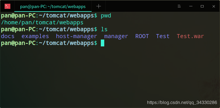 在Eclipse中项目节点右键 Export -> WAR file,配置输出路径就可以导出了,我的路径是 /home/pan/Downloads/Test.war,如图所示 20190328213818466.png