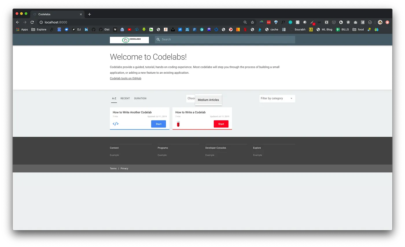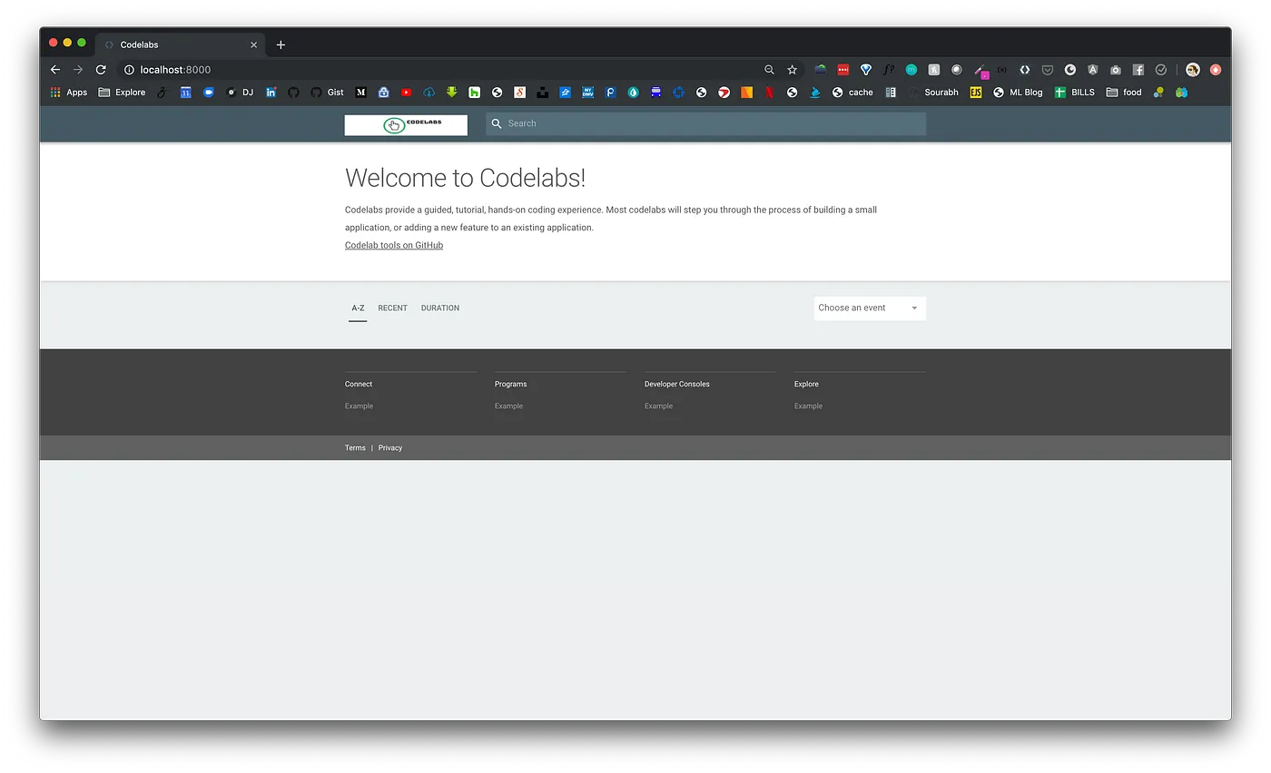 当然,因为 Google 开源了这个网站构建工具,我们也可以基于该工具搭建我们自己的 Codelabs。我们要搭建的网站效果如下截图